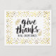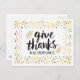 Ge tack under alla omständigheter - Modern kallgrafi designtypografi i svart med ord, "GE THANKS under alla omständigheter" med guld folie stil dots mönster ram.