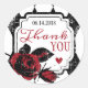 Skugga röd ros och diamantbakgrund med tack och datumetikett för ett bra bröllop.