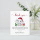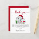 Snyggt och prisvärt tackkort för babyboy shower med "tack" i en stilren röd handskriven stil med svängar och en söt akvarell av en baby pojke elefant med en tomte hatt, ett julgran, en röd och grön godisbit och presenter. Anpassa din tackmeddelande i enkel topografi eller lämna tom för en handskriven not.