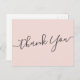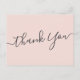 Elegantens rosa tack för vykortet med texten "tack" på hela kortet i ett handskrivet stil-skript