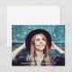 Modern och giftig tackkort-kort med anpassningsbar i studenten har ett foto med vitt (kan ändras) Tack och skript med söt hjärtaccent. Anpassa med bild i student, hennes namn och klassår. Innehåller utrymme på baksidan av kortet för en handskriven anteckning.