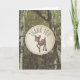 Ett barnduschkort som visar en illustration av en hjort i baby över en kamouflage bakgrund. Matchande inbjudningar till babydusch vid koordinering finns på Jill's Paperie.