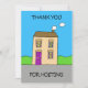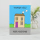 Ett sött tecknad med rökaffisch från det är skorsten. Orden "Tack för att du är värd" följer med bilden.