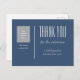 Tack för vykortet efter intervjun för jobbet eller för alla andra affärstillfällen. All text och bilden kan redigeras och anpassas. Ändra den blå bakgrunden till en annan färg om du vill. Få en potentiell arbetsgivares eller affärskollegas uppmärksamhet med ett personligt tack. Skriv ytterligare meddelande på baksidan om det behövs.