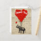En roligt söt vintage elefant flytande på röda kärlek-hjärtballonger med Tack-textmall, lägger enkelt till ditt eget meddelande