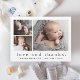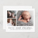 Ett sött 3-foto-kollage-födelsemeddelande och tack för ditt kort med enkel modern typ och 3 bilder på framsidan. Baksidan har ett stort fullt-huvud och ett personligt meddelande från familjen. Klicka på knappen Redigera om du vill anpassa designen med foton och detaljer.