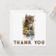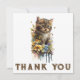 Fin "Tack" vattenfärg Kitten och blommor till kärlek för naturen och vilden.