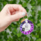 Den här nyckelkedjan för affärsbedömning har en mönster av svart tass avtryck mot en blå och lila abstrakt mönster. Små svarta tass avtryck visas i hela nyckelkedjan. En stor solid cirkel ger ditt ord utrymme att tacka dina lojala kunder. Anpassa snabbt och enkelt.