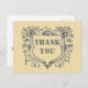 Med detta vykort för grått-skydd i vintagen kan du uttrycka din uppskattning till dina lojala kunder. Denna konstruktion har en ornatsköld omgiven av botaniska vinstockar. Mittpunkten på den här skölden har ord "Tack" i stort grått-teckensnitt. Baksidan av detta vykort ger ytterligare ord av uppskattning och ditt företags namn som lätt kan vara personlig.