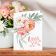 En vacker djup persiko- och vit vattenfärgstack för blommigten med stil och elegans. Utformningen har en vacker hörnbukett med djupa persikor och vita persikor och en efterföljande eukalyptus grönare. Kortet är tomt på insidan för att du ska kunna skriva ditt personliga tack.