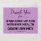 Text: Tack för att ni försvarar kvinnors hälsa. Land över party. #PeopleOfConscience Black-text på blekens lila. Lila är en kombination av rött och blått, som innebär att man samarbetar och sätter land över party. I färg skiljer man mellan tackkort och vykort för rosa som skickades den 15 mars. Tack republikanska kongressledamöter för att de har stått upp och gjort högerna sak, för att de har stått upp för land över party, för att de har varit samvetsgranna. Positiv förstärkning fungerar.