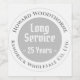 Etikett på vinflaska med meddelande om erkänsla för lång tjänst. Företagets uppskattning för lojal tjänst eller långvarig tjänst. En etikett för vin med lång tjänst som har mottagarens namn, liksom antalet år i tjänst och företagets namn, organisation eller verksamhet.