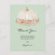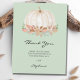 Detta stilrena höstbarnvaskort med tackmeddelande har en akvarellpumpa och höstlig lövverk på en mjuk grön bakgrund. Perfekt för en höstpojke, flicka eller könsneutral barnvask. Lätt att anpassa. Original Akvarell © Michele Davies.
