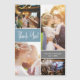 Grattisar på bröllop! Minneshögtidlighålla detta särskilda tillfälle och tacka dina gäster med Lodrät Blue Bröllop Photo Collage (blå fotokollage) Tack för dina kort. De här platta korten i anpassadet är ett perfekt för att de vackra minnen som fångades på din stora dag. Välj fyra av dina favoritfoton i bröllop för att skapa en unik och personlig kollage på kortets framsida. Det kommer att glädja gästerna att få ett hjärtligt tack med en glimt av kärlek och en glädje som delas under er bröllop firande. Det dammiga blått- och grått färg-systemet tillför en del sofistikering till designen, skapar dessa tack inte bara som ett tecken på uppskattning utan också som en hjärtefråga som dina gäster kommer att ta hand om. Anpassa korten med ditt namn och bröllop-datum, och lägg till den där extra-tanklösheten. Mottagaren kommer att känna sig speciell och älskad när du vet att du tog dig tid att skapa ett tack för anpassningsbarna bara för dem. Om du vill att de här tackorden ska bli ännu mer minnesvärda bör du överväga att välja foton med hedervärda gäster som spelade en viktig roll i bröllop. Det är ett vackert sätt att uttrycka din tacksamhet och skapa ett bestående minne av din speciella dag. Vårt Blue Bröllop Photo Collage-Lodrät - tack. Du kan med dina kort din lycka och tacksamhet med dina nära och kära. Korten är ett hjärtligt uttryck för uppskattning som kommer att omhuldas och komma ihåg av dina gäster. När du tittar tillbaka på din bröllopsdag kan du leva glädjen och kärlek genom dessa vackra foton, och dina gäster kan också göra det. Det är en underbar påminnelse om kärlek du delade och minnen du skapade ihop. Tack till gästerna i stil och skapa varaktiga minnen med vårt Lodrät Blue Bröllop Photo Collage Tack. Din bröllopsdag var speciell och nu kan du göra dina tackkort lika minnesvärda. Grattisar igen, och vi önskar er en livstid av kärlek och lycka tillsammans!