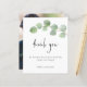 Elegant Eucalyptus Löv Script Photo Tack. Ett budgetmässigt prist mindre än 4,5 x 5,6 tum alternativ. Finns i ett SEMI-GLOSS 110 lb-kort LAGRAR, vilket är standardalternativet (tjockare för inbjudningar), ELLER SATIN AVSLUTAR 80 lb PAPPER LAGRAR (perfekt för bilagor). Kuvert är ett extra som tillval och är något större än det storleka kortet. En elegant gren av grönt eucalyptus löv flödar delvis över från högerna, med en fast typografisk Tack i ett modernt handskrivet stil. På baksidan byter du ut ditt favoritfoto från din dag (av porträtt orientering). Resten av texten på framsidan kan du enkelt anpassa till ditt eget ord.