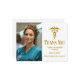 Detta eleganta personliga tackkort för sjuksköterske- eller medicinsk utbildning i guld har modern typografi för en examen från 2025 ovanför ditt foto som sjuksköterska eller läkare. Anpassa med ditt examenår under den medicinska kaducéussymbolen och ett anpassat foto av examen.