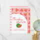 Tittar för något uppfriskande och vibrerande för temat sommaren party. Det här vattenmelontemat är perfekt för sommartid roligt. Tack för att du firar din lilla födelsedag med det här unika designade vattenmelonkortet mönster " tack vare ett melonkort". Anpassa den här vattenmelondesignen i mönster tack genom att lägga till texten.