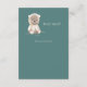 Nalle i ett regnrock-redo för regnigt väder. Så enkelt och sött. Gröntens bakgrund. Perfekt för ditt "tack"-kort.
