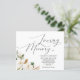 Tackkort för medkänsla med vattenfärg blommor och grönska i budget. Din evenemangsinformation kan anpassas i valfri färg eller teckenstorlek.