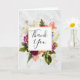 Ett tackkort med söt design. En blommigt som är arrangemang av många olika blomsorter i rött, rosa och vitt färg och partier av lövhaltig grönt. Ett ram överst med faux-guld-foil gräns. Utformning av klass och elegant. En benvit marmor mönster-bakgrund. Meddelande där du kan anpassa dig.