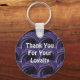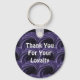 Visa uppskattning för dina lojala kunder med en nyckelkedja med en modern abstrakt mönster. Tack för att du klisterat med lagrar på överlappande cirklar med snurrande lila och svart mönster. "Tack for Your Loyalty" visas i mitten med vitt teckensnitt och kan enkelt anpassas om du vill.