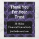 Visa lojala kunder uppskattning för deras förtroende med en vinflasketikett med ett modernt abstrakt mönster. Tack för att du märker det med lager av överlappande cirklar med ett snävt lila och svart mönster. "Tack för ditt förtroende", ditt företagsnamn och webbplatsen kan snabbt anpassas.