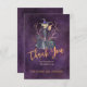 eleganten chic Halloween orange och lila möhippa för vattenfärgstypografi - tack vare din kortmall som innehåller en häxa i en grått-kolklänning och hatt med en borst och brushwood. Lämplig för Halloween-häxad häxtemad möhippa.
