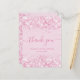 Ett tack för en Möhippa. rosa. Med faux glitter stoft. På stora bokstäver och text framtill: Tack, text, titel och datum. Tillbaka: Anpassa och lägg till tackkort och namn.