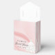 För en elegant, klassisk, glamorös och giftig stil-möhippa. En rosa silke, satinbakgrund och en möhippa klänning. Med texten: Möhippa och Tack skriven med ett modernt handskript i stil. Mall för bridens namn och datum.