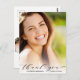 Ett modernt studenten-tack som du har med student-fotot överlagrad med "tack" i ett elegant-skript och deras namn och klassår i enkel typografi. På den motsatta sidan lägger du till ytterligare ett foto, anpassar ett tackmeddelande och lägger till namn i en namnteckning skript.