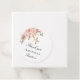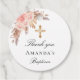 För en elegant och modern baptism. En vit bakgrund. Dekorerad med ro guld, blommigtar för rosa, pampasgräs och gyllene kor. Anpassa och lägg till ett namn.