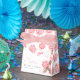 Paris Bröllopsdusch Tack Förmån Box med Eiffeltornet och rosa blommor och skrivna bokstäver.