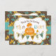 Den guld- glitter-looken gränsen med bakgrund för trycket för höstoaklöv med pojken i pumpasnäcka och buntingbanret tackar dig att card.