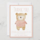 Jag vill uttrycka min tacksamhet med den här vackra babyduschen tack vare ett kort med en söt björnillustration med en mjuk rosa-tröja. Den minsta, pastellformade designen är perfekt för pojke och innehåller ett hjärtskärpt meddelande med text från namn i familjen. Idealisk för att ha skickat uppskattningar till dina gäster för deras tankeväckande gåvor och vänliga önskemål.
