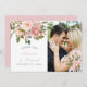 Trendiget rosa ros och guld löv Bröllop ett fototack som du har kort med elegant typografi.