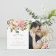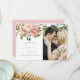Trendiget rosa ros och guld löv Bröllop ett fototack som du har kort med elegant typografi.