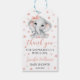 Tack för rosa elephant flicka dusch, märkre presentetikett