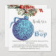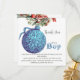 Rosa eller Blue Winter Gender Reveal Party - Tack för att du med hjälp av -Genderna kan visa partiinbjudan med en vattenfärgad illustration av rosa och blåvintornament med text på överkanten som säger "Rosa eller blått falla i kärlek med dig. Med höst löv bakgrund och personlig kan du göra den här vintergenderna till din partiinbjudan. Perfekt för vintersäsong.