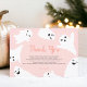 Lägg till dina anpassningsbar-tack-kort till babyduschen med den här toppen söta illustrationer med spöken i grått och pastellrosa. Du kan ändra hela färgen i illustrationen och texten.