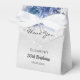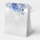 Elegant, födelsedagsfest gynnar. En snyggt faux silver-bakgrund med blåa blommor, blommigtar och faux silver glitter, gnistor. Anpassa och lägg till ett namn och ett datum.