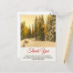 Tack-kort med vacker naturfotografi. En isolerad vinterstig med höga snötäckta tallar.