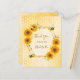 Ett tack för en sommartid Möhippa. Gult och orange: Rustiska vattenfärgade solrosor på en bikaka mönster. Med faux guld geometric ram. Med texten: Tack och Bride to Bee skrivet med ett modernt handskript i stil. Anpassa och lägg till bridens namn. Brown brev. Din tackkort och namn. En söt leende humla med ett kuvert.