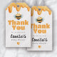 Tack för spädbarnsskor för spädbarnsbin för spädba presentetikett