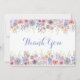 Tack vare den här eleganten har du en vacker Springtime-blomsterträdgård i skuggor av lila, rosa och blått överst och grund. Tacken skrivs i mitten i ett söt-skriptteckensnitt. På motsatt sida finns en liten blommigt tvärs över toppen.