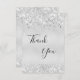 Ett feminin- och elegant födelsedagstack. En faux silver metallisk tittar bakgrund färg. Med faux glitter stoft. På framsidan av stora bokstäver och texten: Tack. Tillbaka: Anpassa och lägg till tackkort och namn. Namn är skrivet med ett modernt handskript i stil.