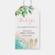 Vattenfärgade sandstränder och öbotaniska blommor och bladbouquet med utsmyckade flip-flops, personliga tack-kort. Anpassa text, typsnitt, färg och storlek.