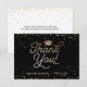 Med den här eleganten och det fina tackkortet finns guld (simulerad folie) som överensstämmer med ord "Tack" som visas i ett guld-skript. Bakgrunden är svart, men kan ändras till valfri färg. Kortets baksida har ett meddelandeområde samt ett tomt utrymme nedan för student att underteckna sin namn och eventuellt en handskriven anteckning från extra. Ett vackert och enkelt sätt att tacka gästerna.