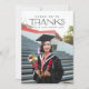 Ett foto-studenten-tack med funky-typografi, plats för ett stort foto och tackkort på baksidan.