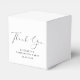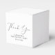 Elegantens minsta förmånslåda för studentfest med "Tack" i ett snyggt-skript och gradens namn och party-datum i enkel typografi.