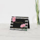 Moderna svarta ränder kantade med guld över vintage svart spets, guldbokstäver och snygga ljusröda krysantemum prästkragar som accentuerar de svarta ränderna.